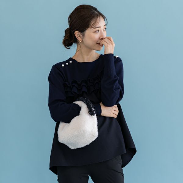 【返品不可】【SONO】チェストフリルハイブリッドニットプルオーバー【★】