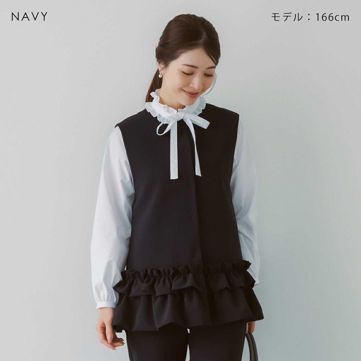 【SONO NAVY】 フローラルフリルチュニックジレ【20260225】