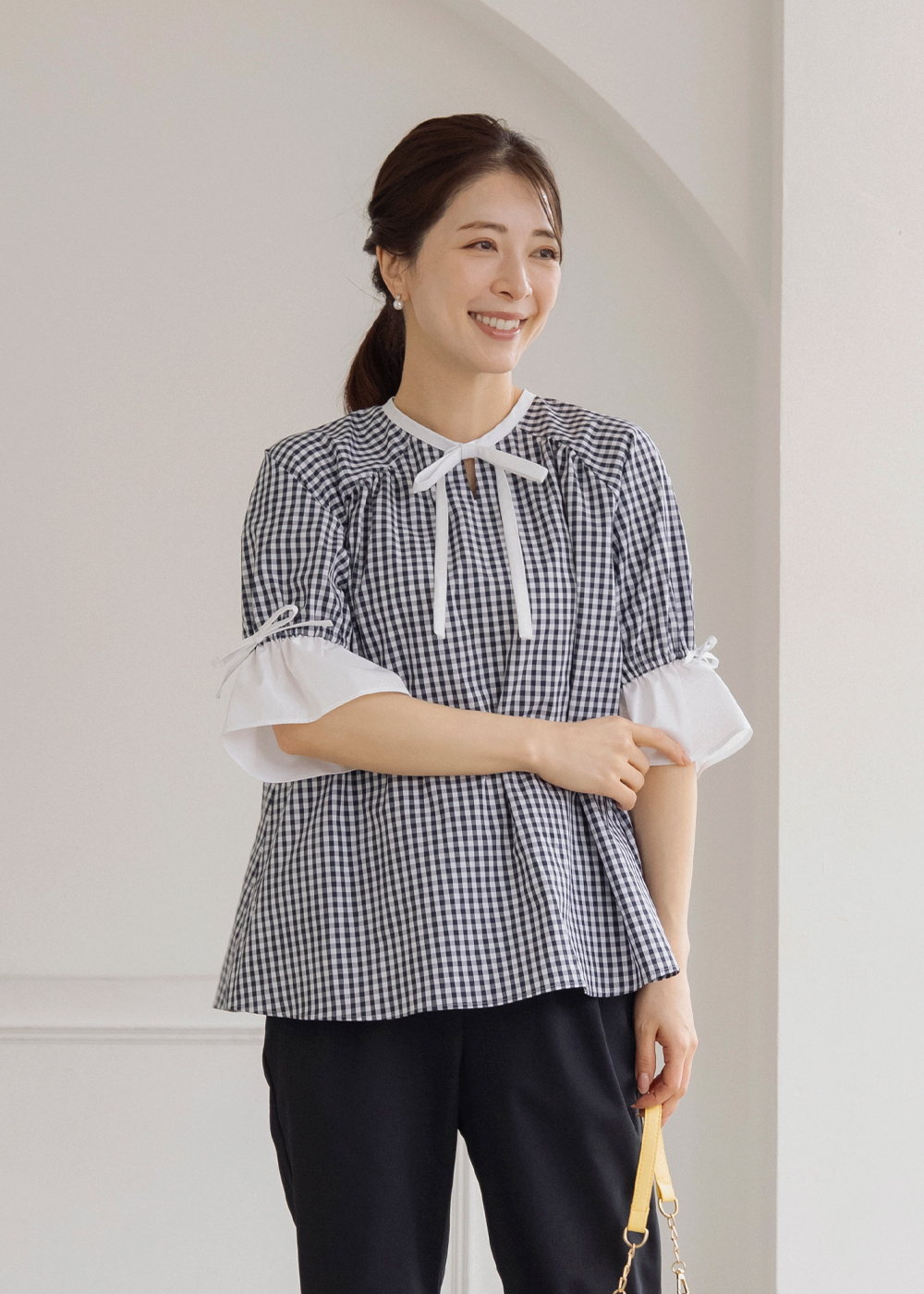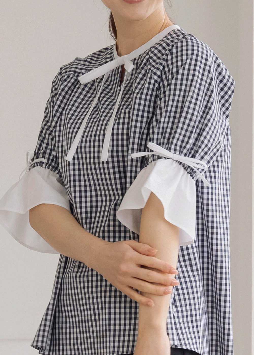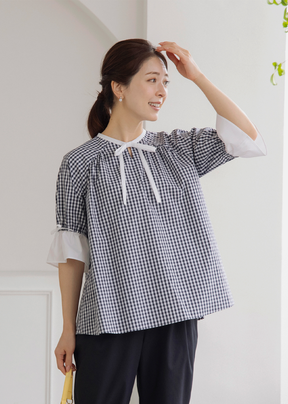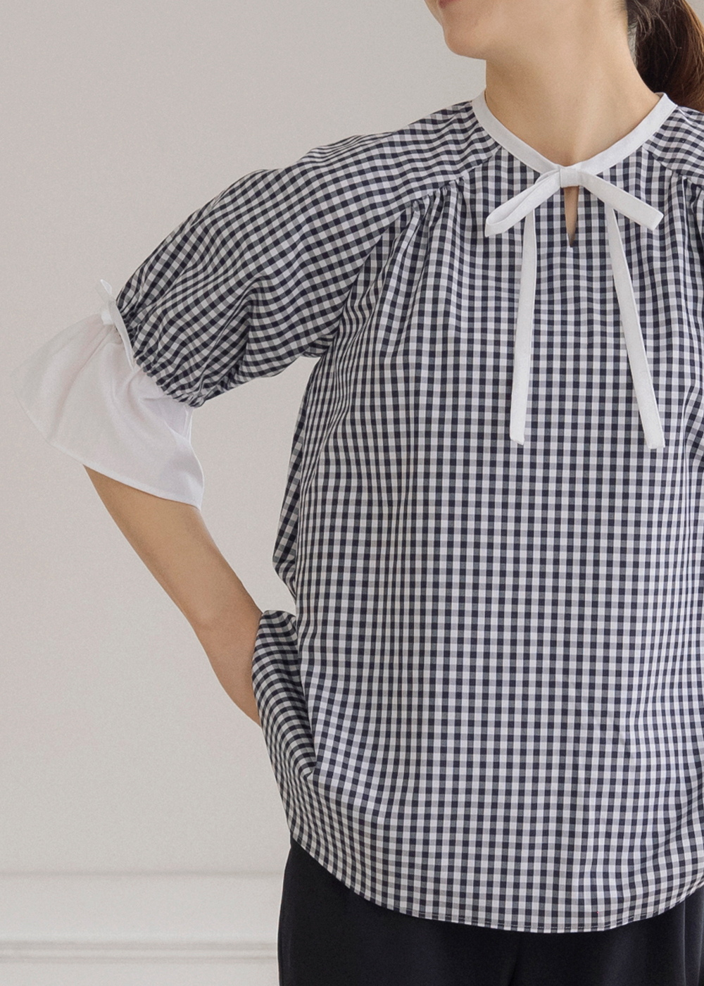 ギンガムチェックのハチドリブラウスが