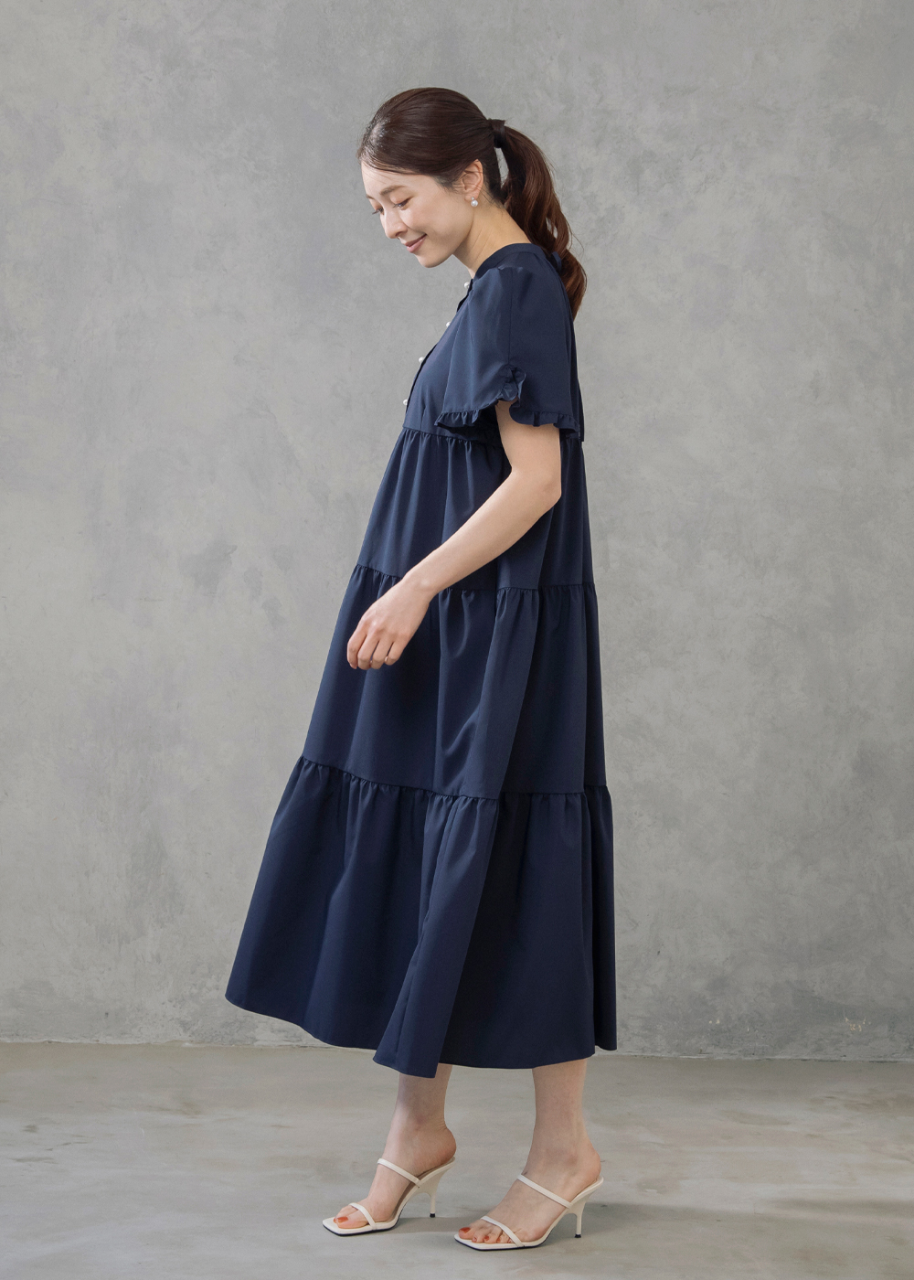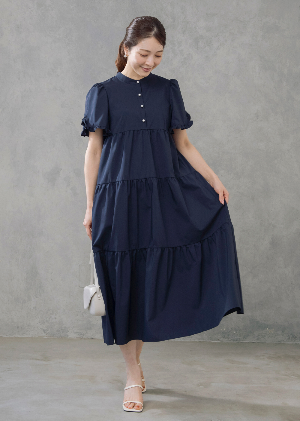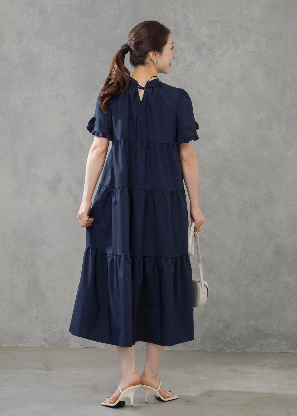 前後2WAYで着こなしを楽しめるティアードドレスに