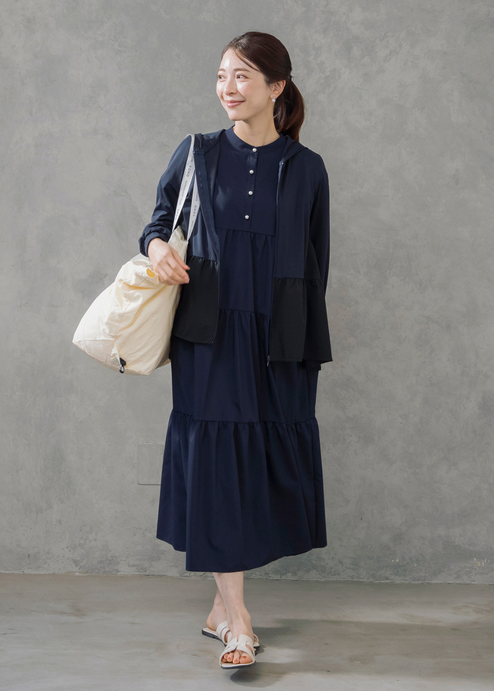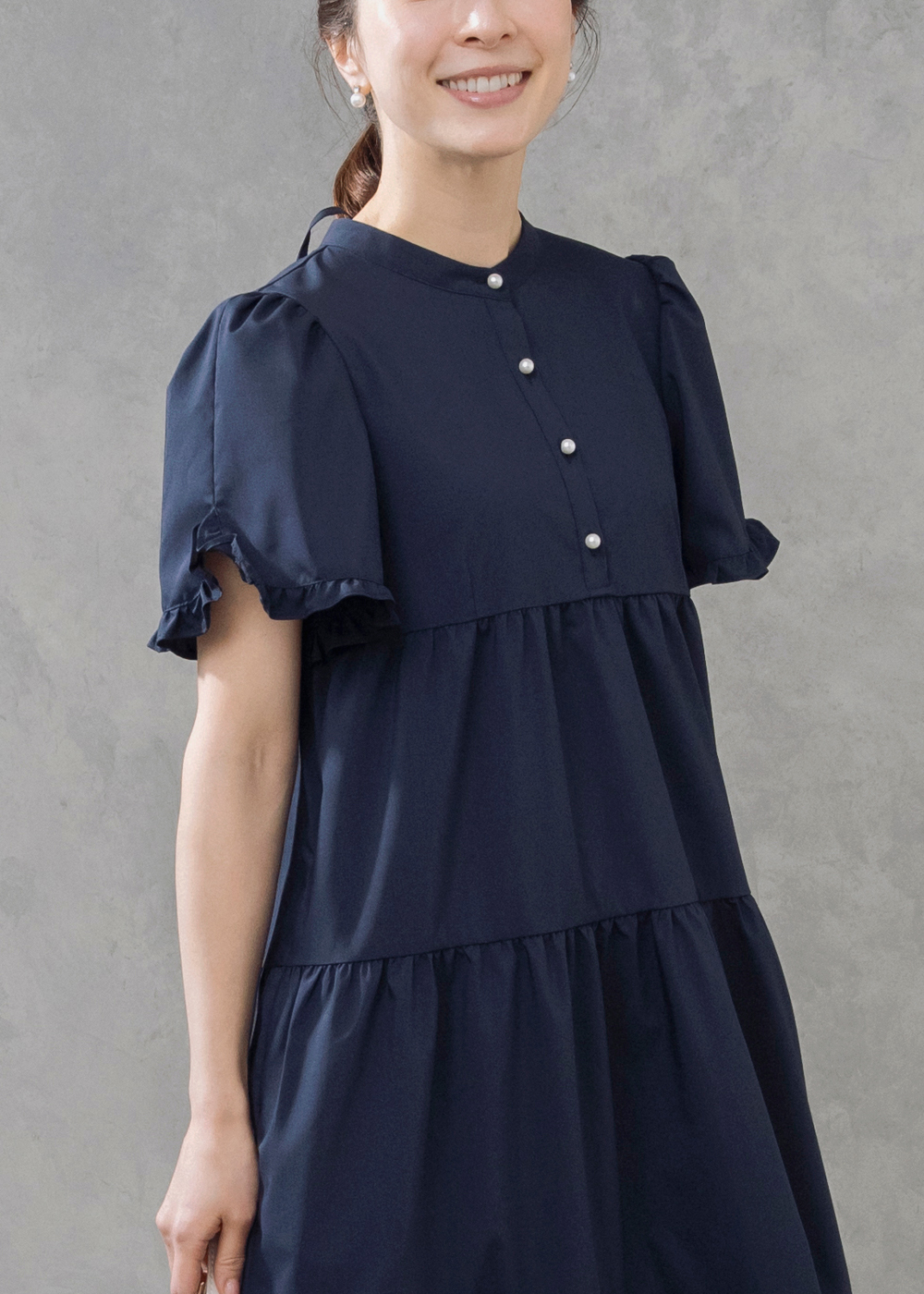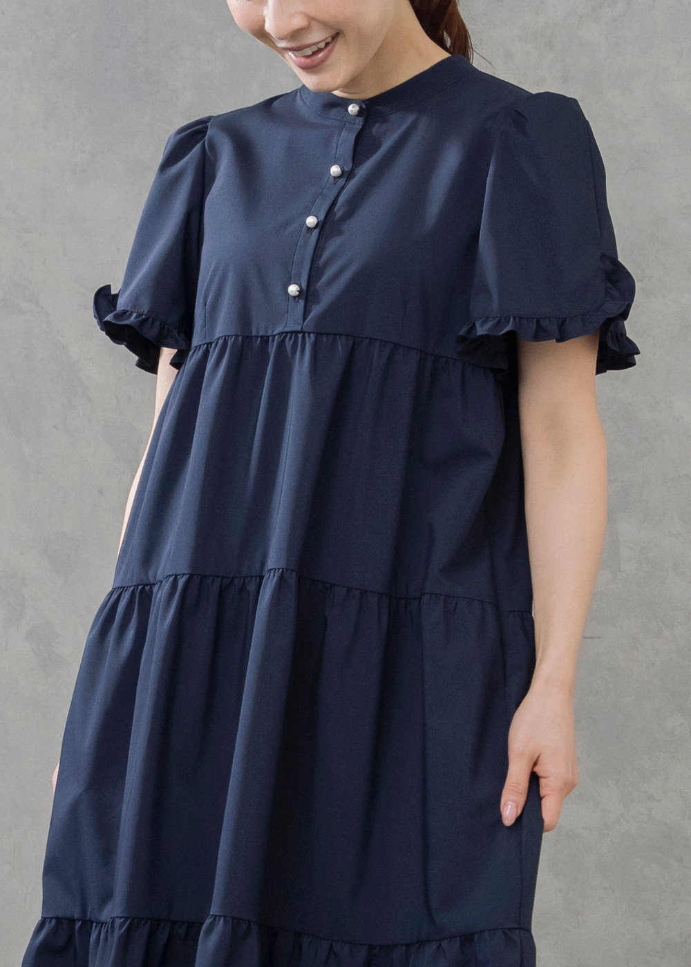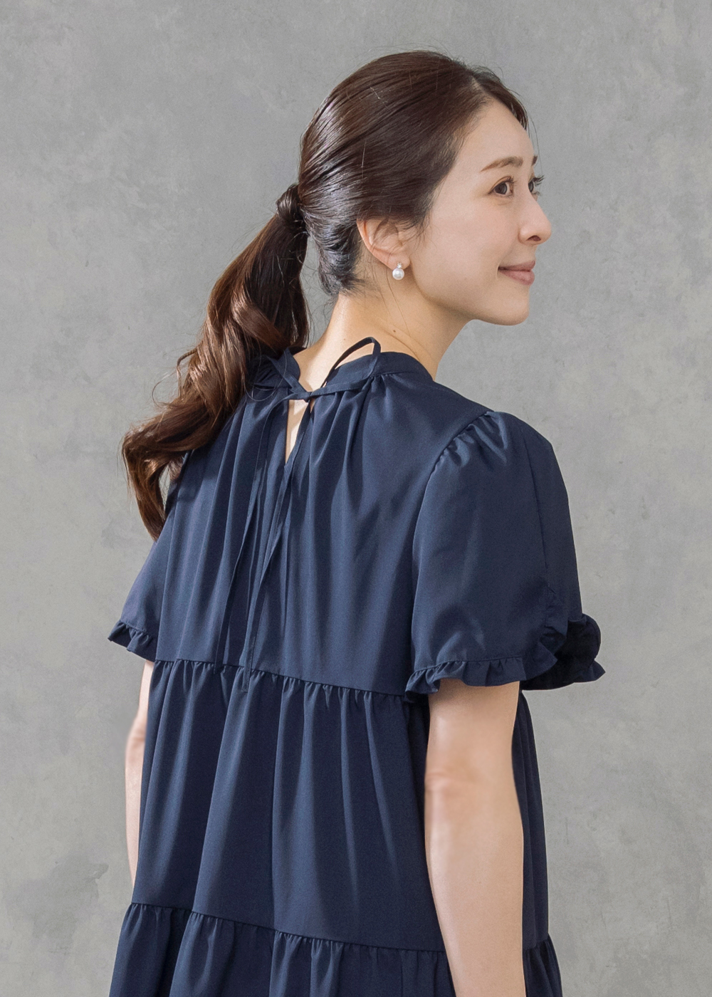 前後2WAYで着こなしを楽しめるティアードドレスに