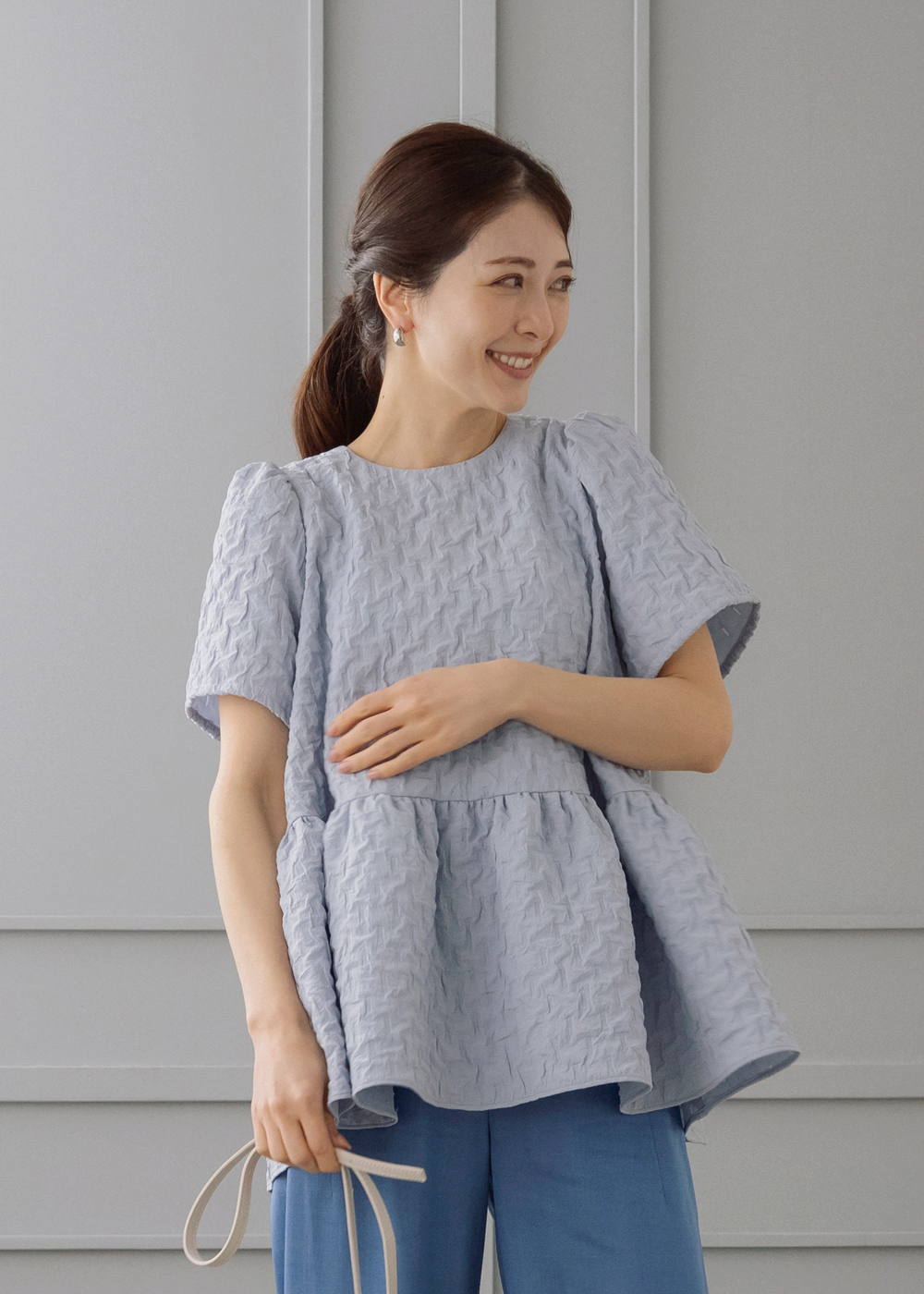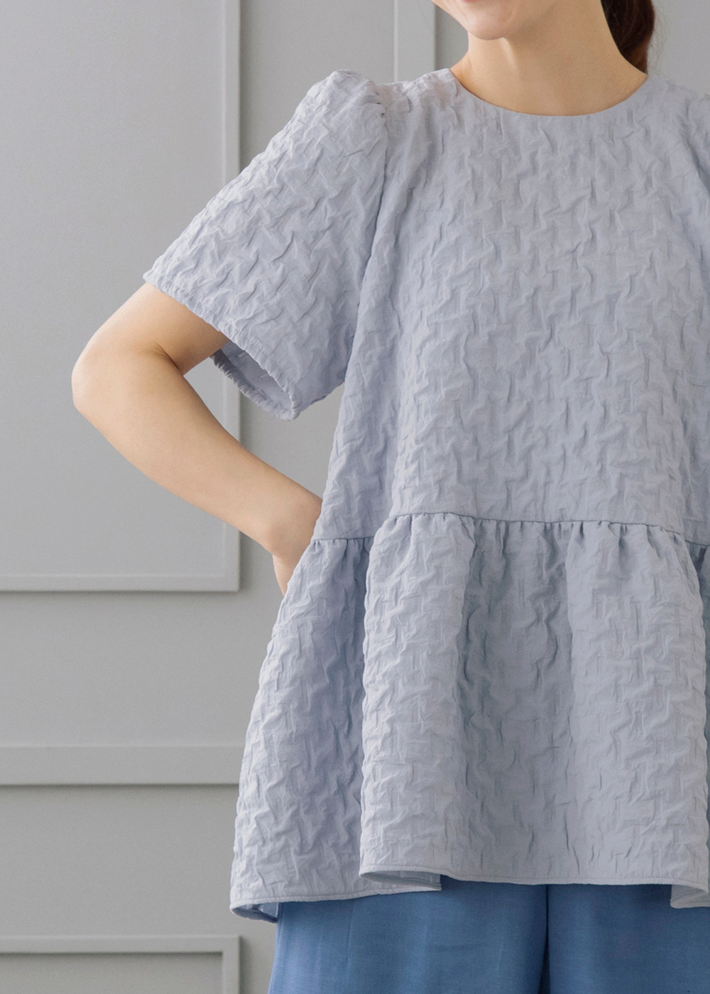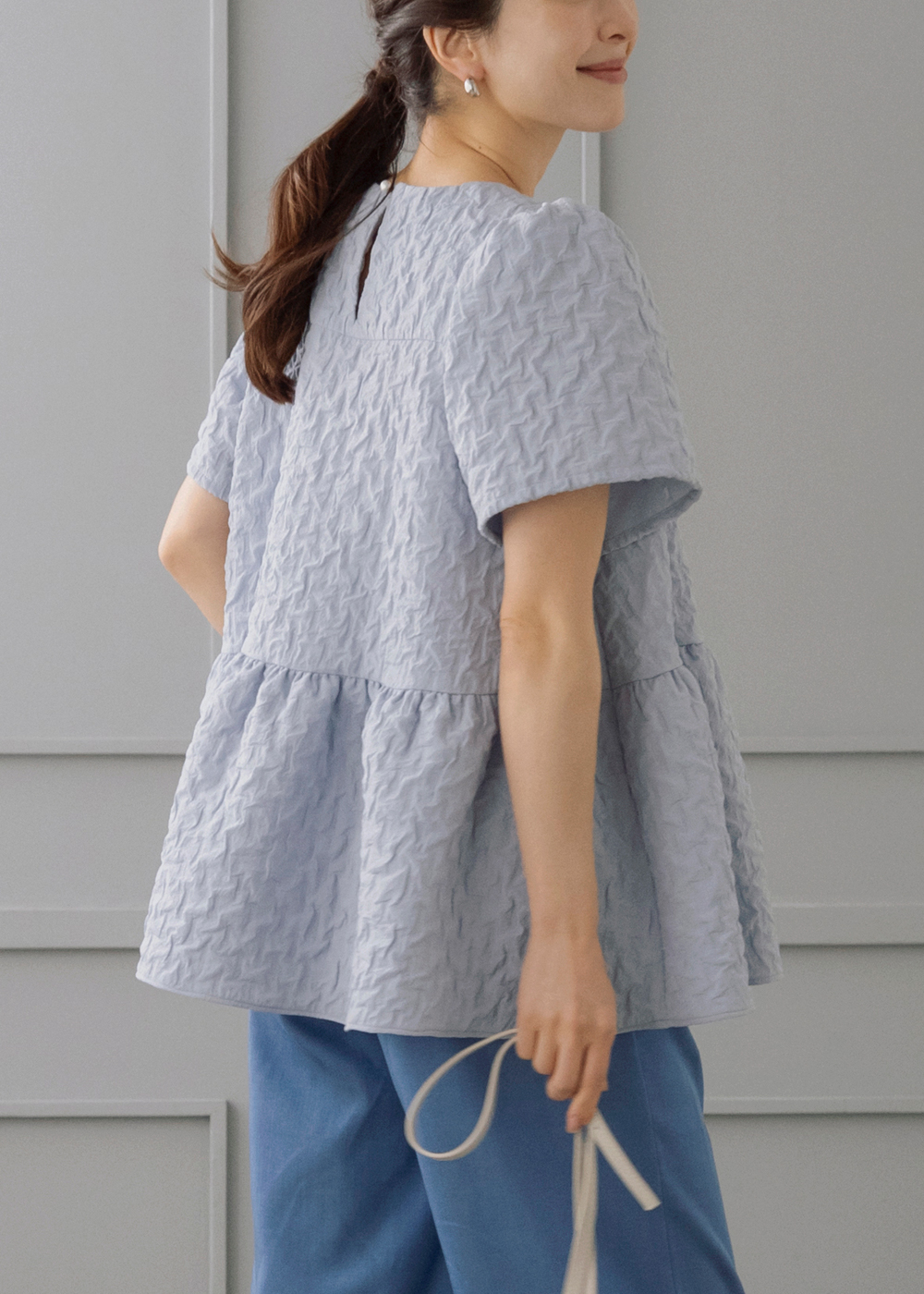 ふんわり軽やかな膨れジャカードのバルーンブラウスを