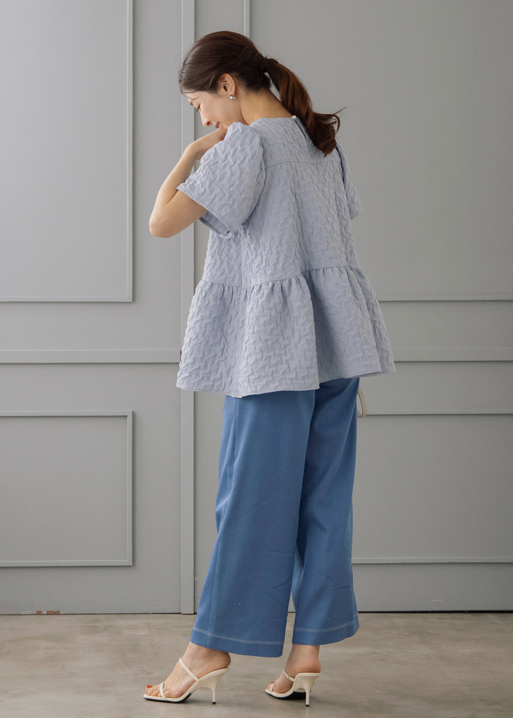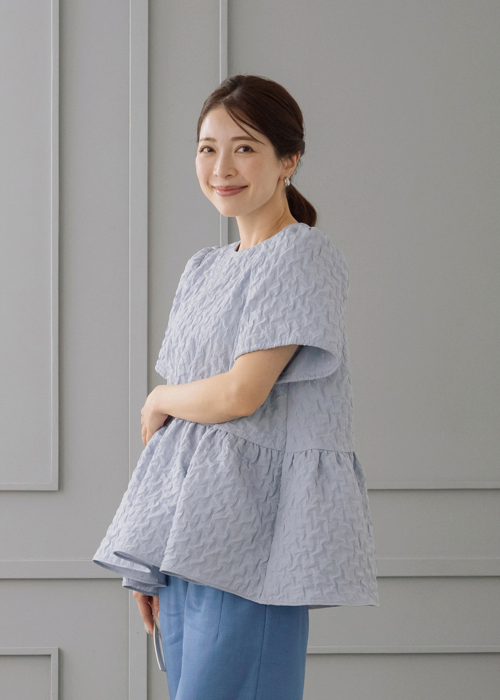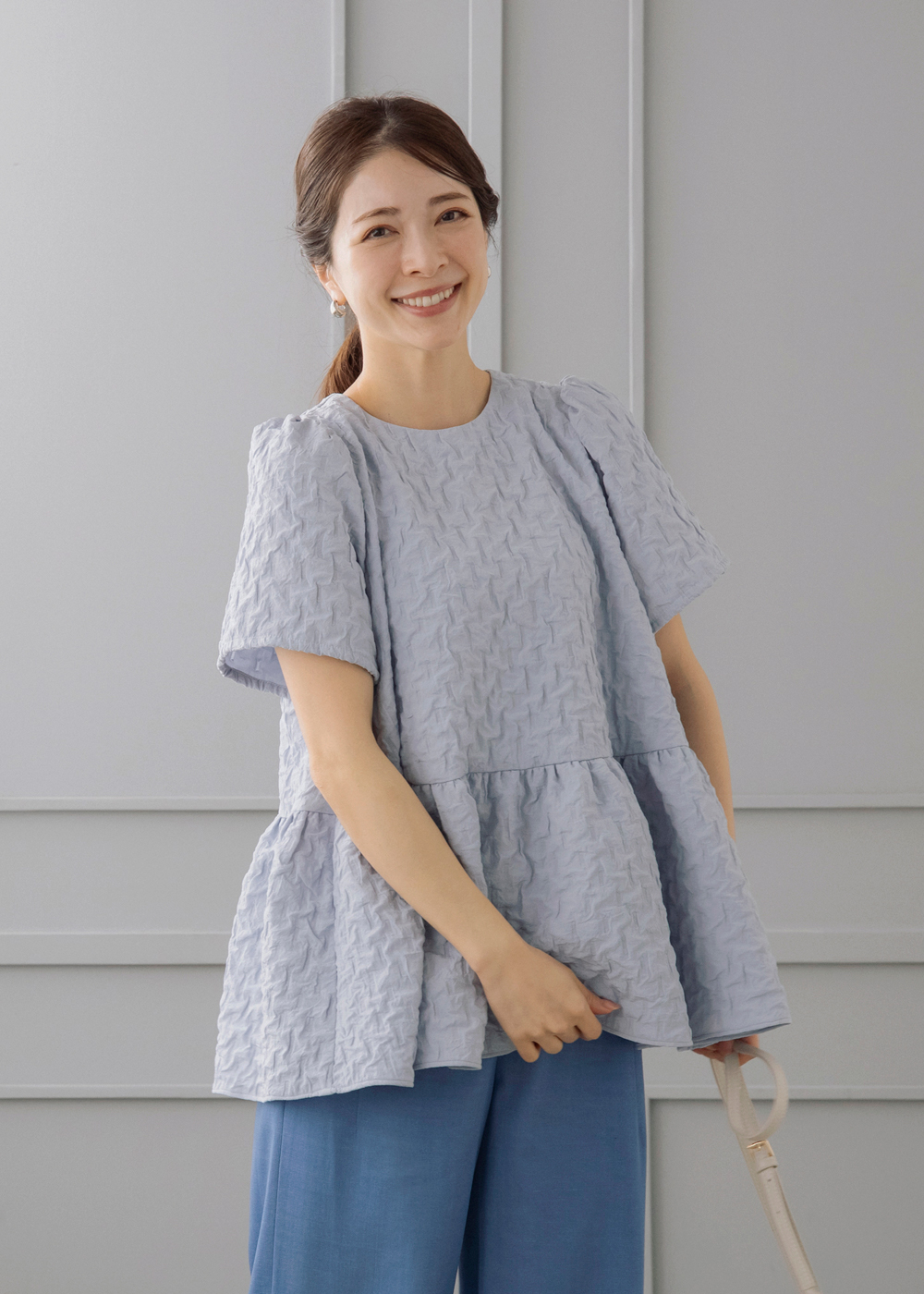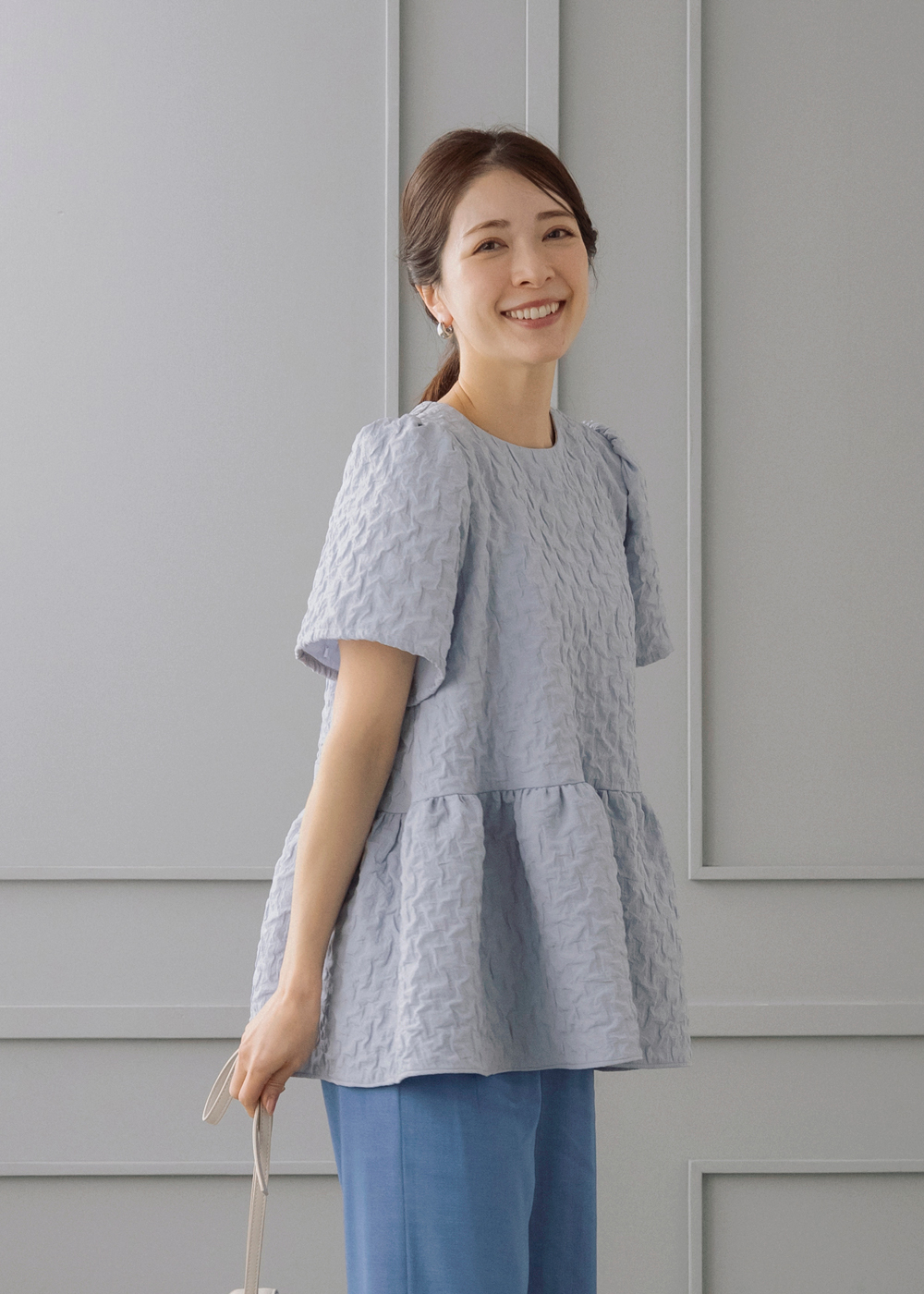 ふんわり軽やかな膨れジャカードのバルーンブラウスを