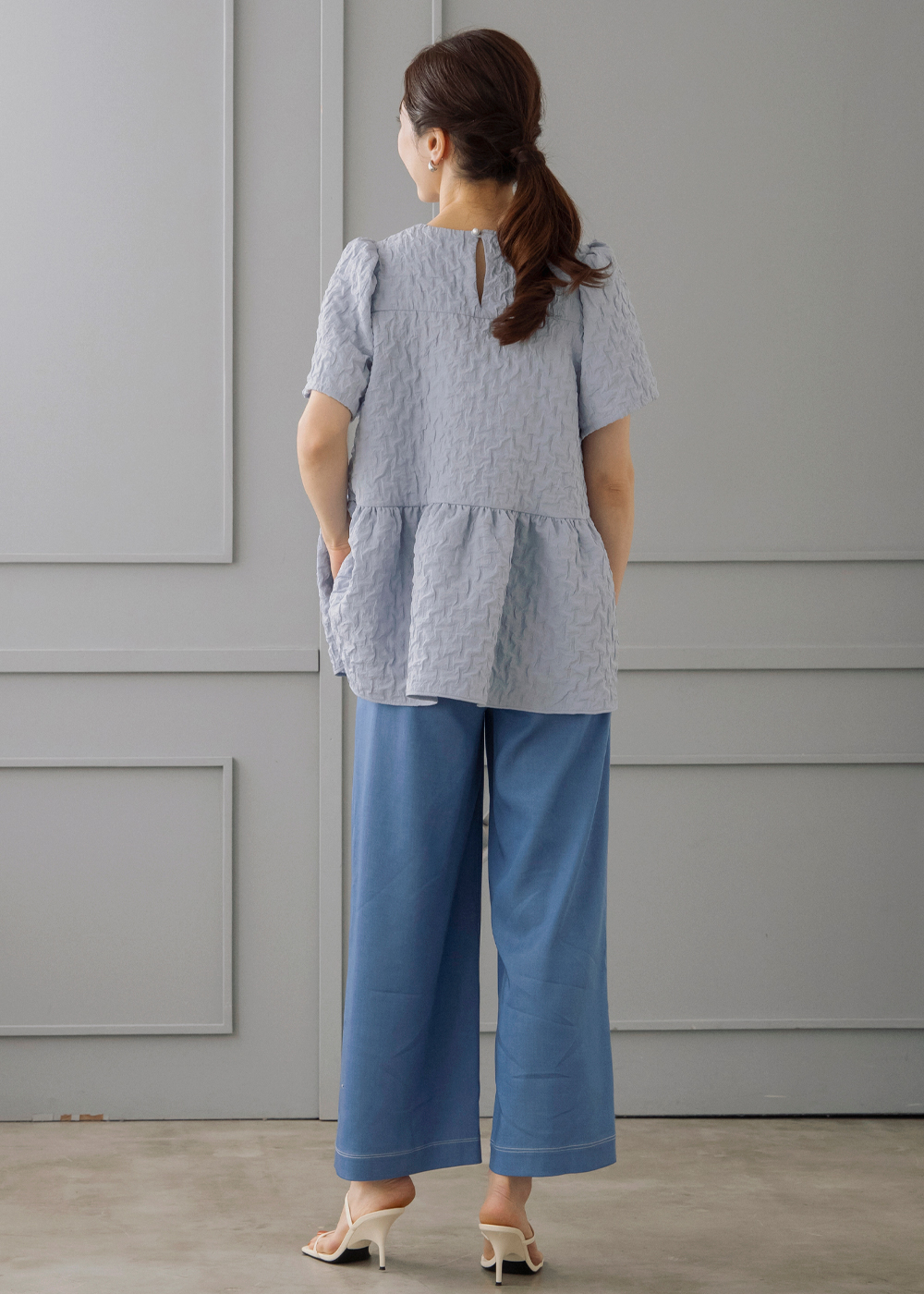 デニム調パンツに合わせた