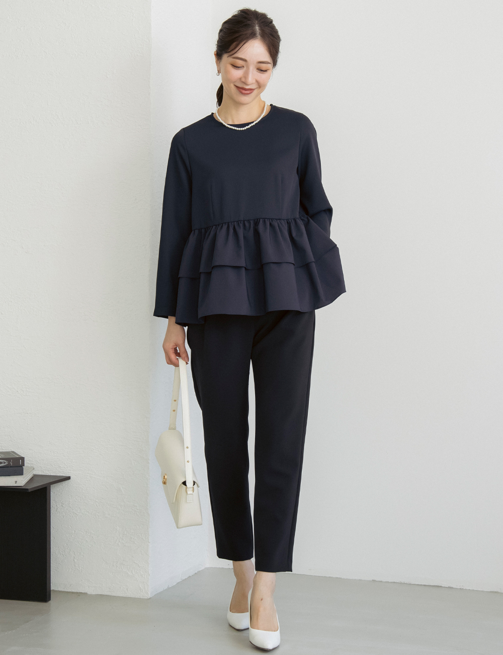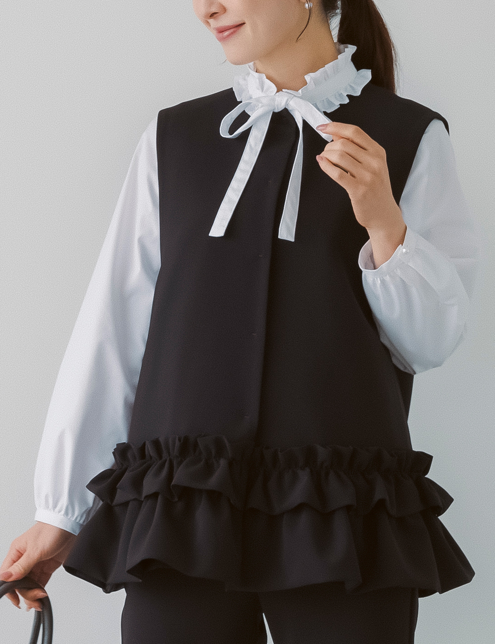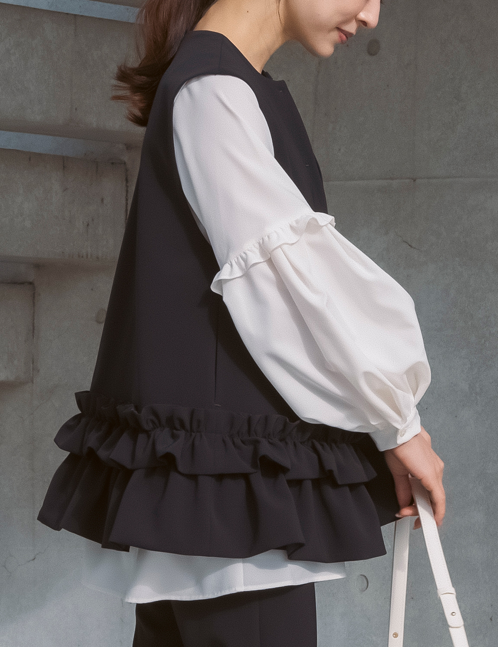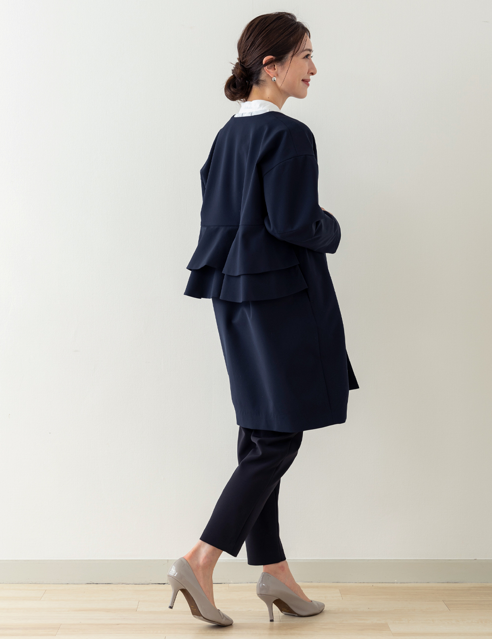 最近はジレやきれいめトップス+パンツという選択も増えています。