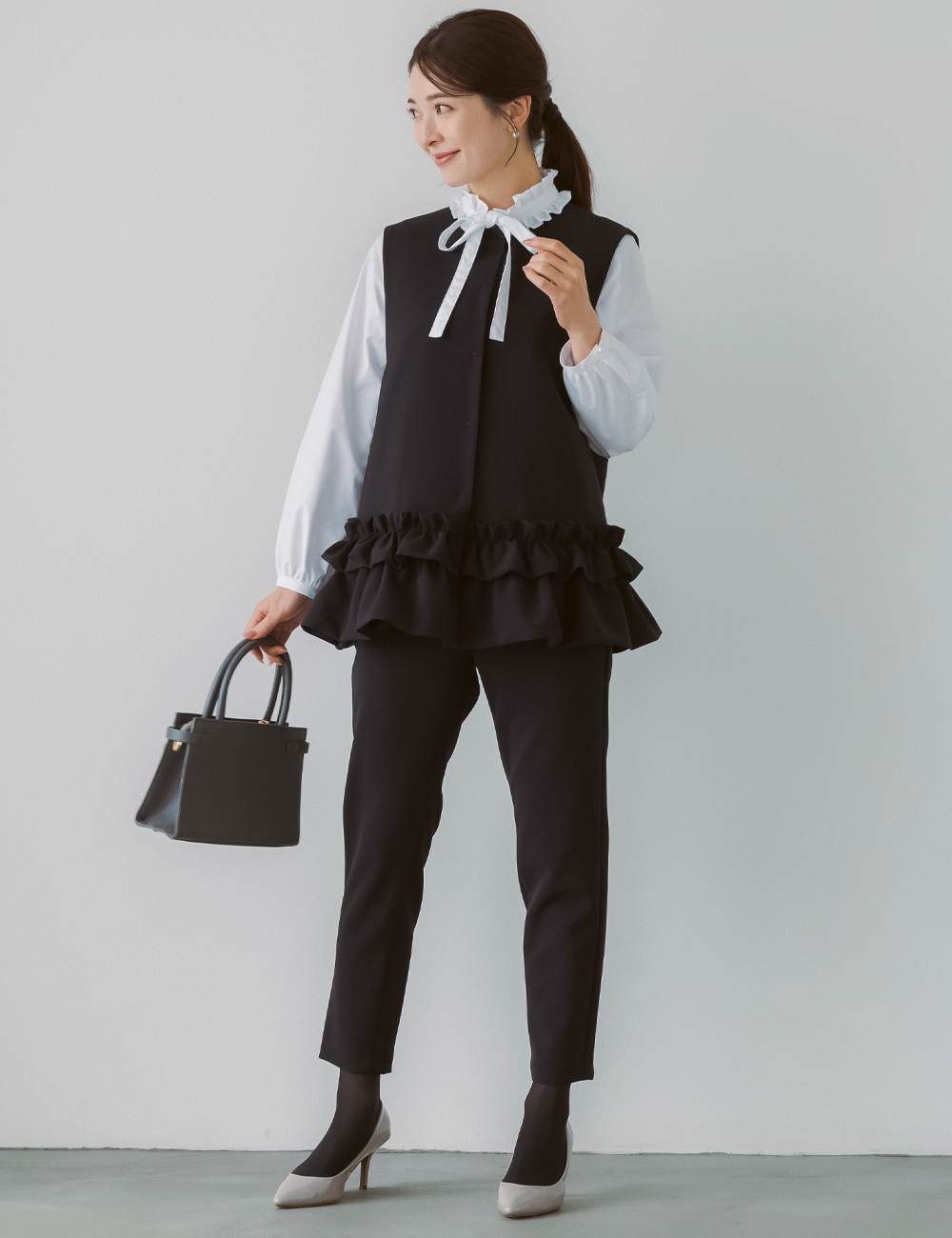 やわらかさと可愛らしさを添えた王道LOOKです
